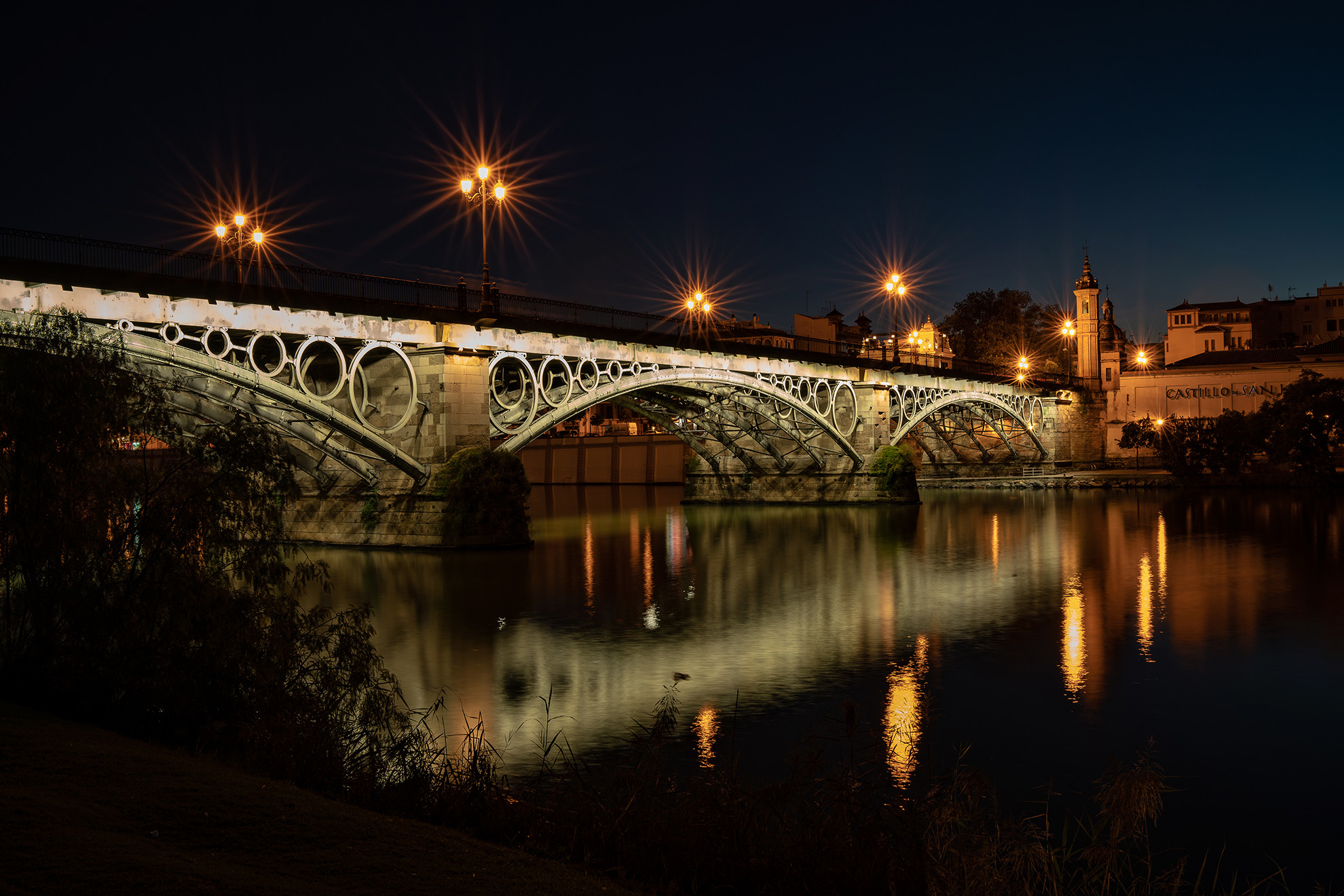 Quand Séville rencontre Eiffel cela donne Le Pont Isabelle II, connu sous le nom de Pont Triana qui enjambe la darse du Guadalquivir.